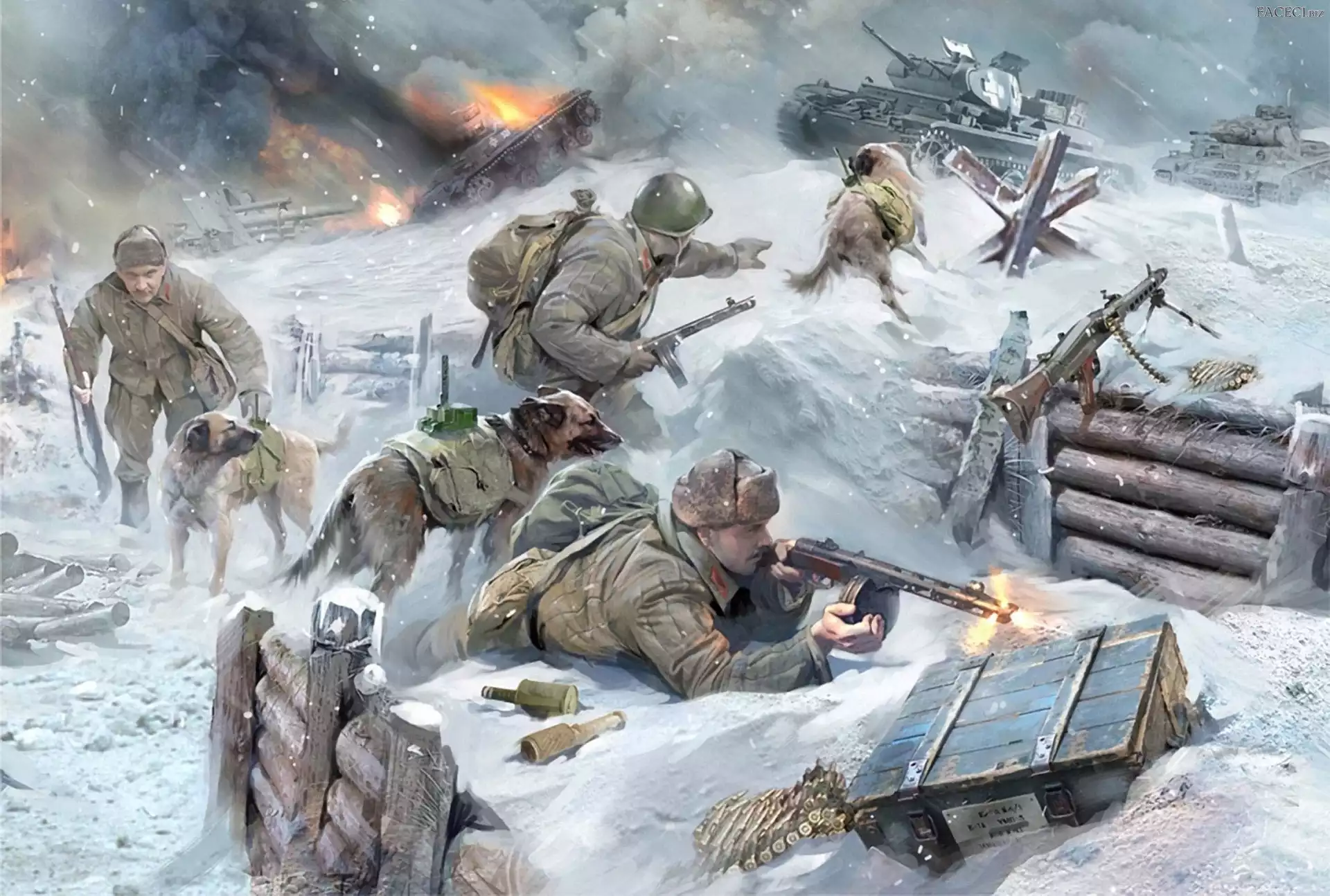 Ogień, Walka, Czołgi, Żołnierze, Broń - faceci.biz